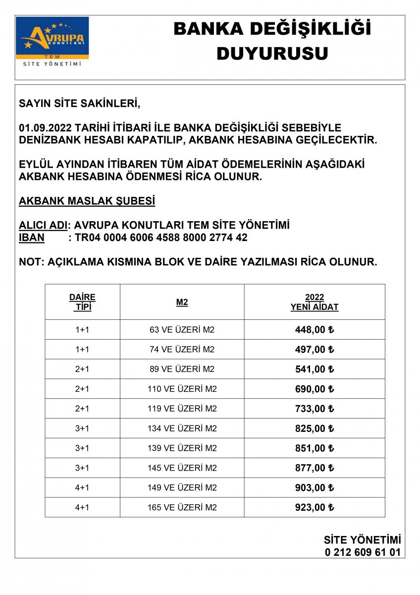 BANKA DEĞİŞİKLİĞİ DUYURUSU