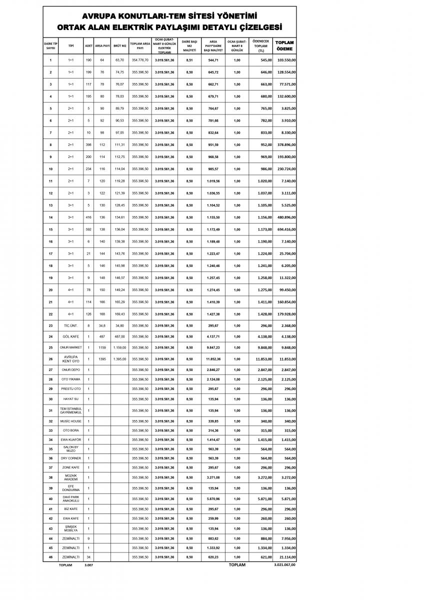 OCAK-ŞUBAT VE MART 8 GÜNLÜK 2026 ORTAK ALAN ELEKTRİK FATURALARI BİLGİLENDİRME